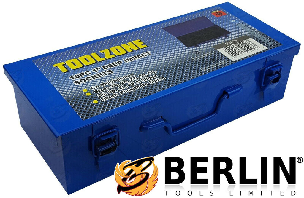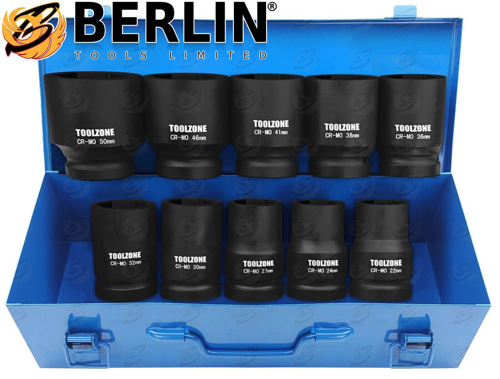 TOOLZONE 10PCS 1" DRIVE 6 POINT DEEP IMPACT SOCKETS 22MM - 50MM