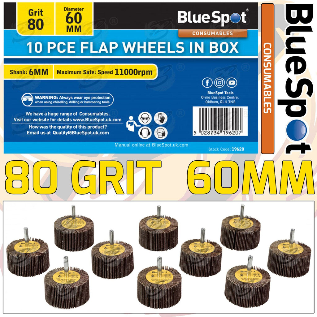 BLUESPOT 10PCS FLAP WHEEL DISCS ( 80 GRIT - 60MM )