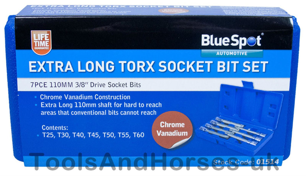 BLUESPOT 7PCS 3/8" DRIVE EXTRA LONG TORX BIT SOCKETS T25 - T60