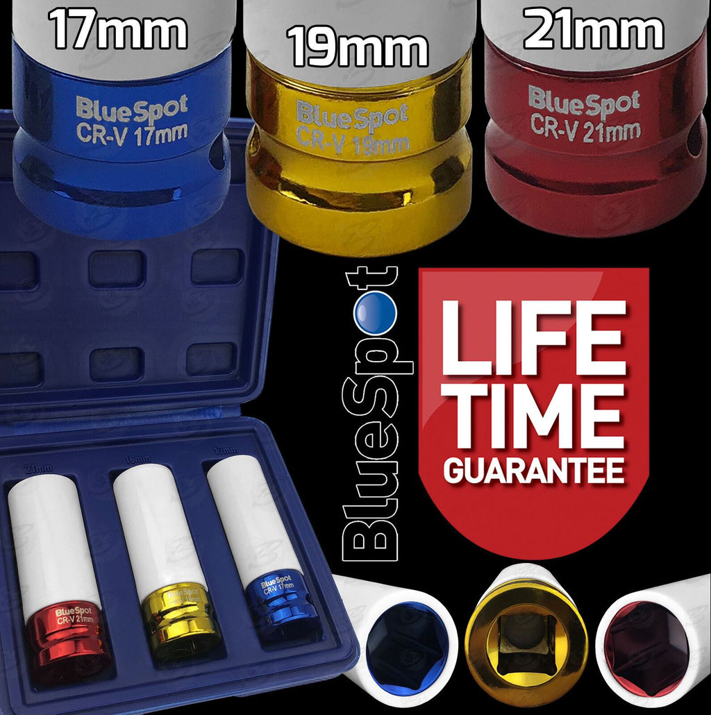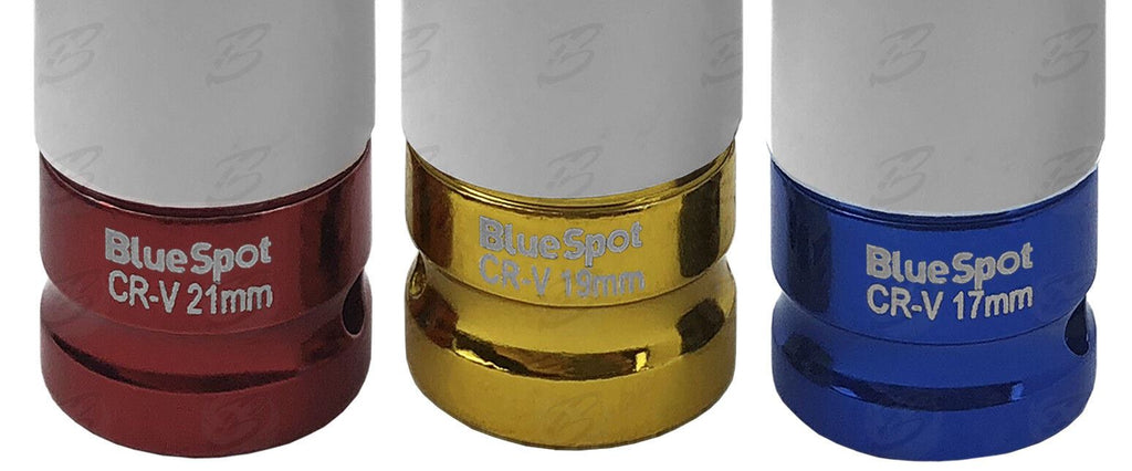 BLUESPOT 3PCS 1/2" DRIVE 6 POINT ALLOY WHEEL NUT SOCKETS ( 17MM - 21MM )