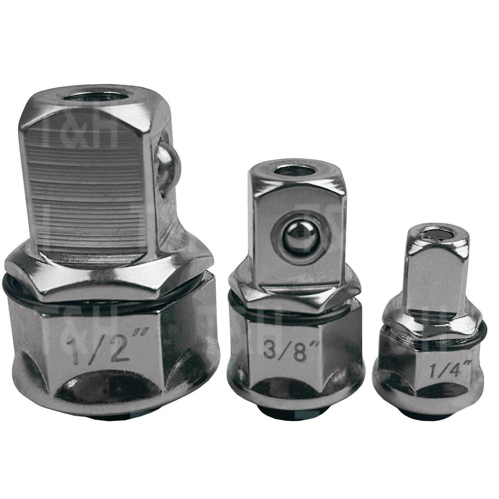 - SUPPLIED WITH 1/4", 3/8" AND 1/2" DRIVE ADAPTERS