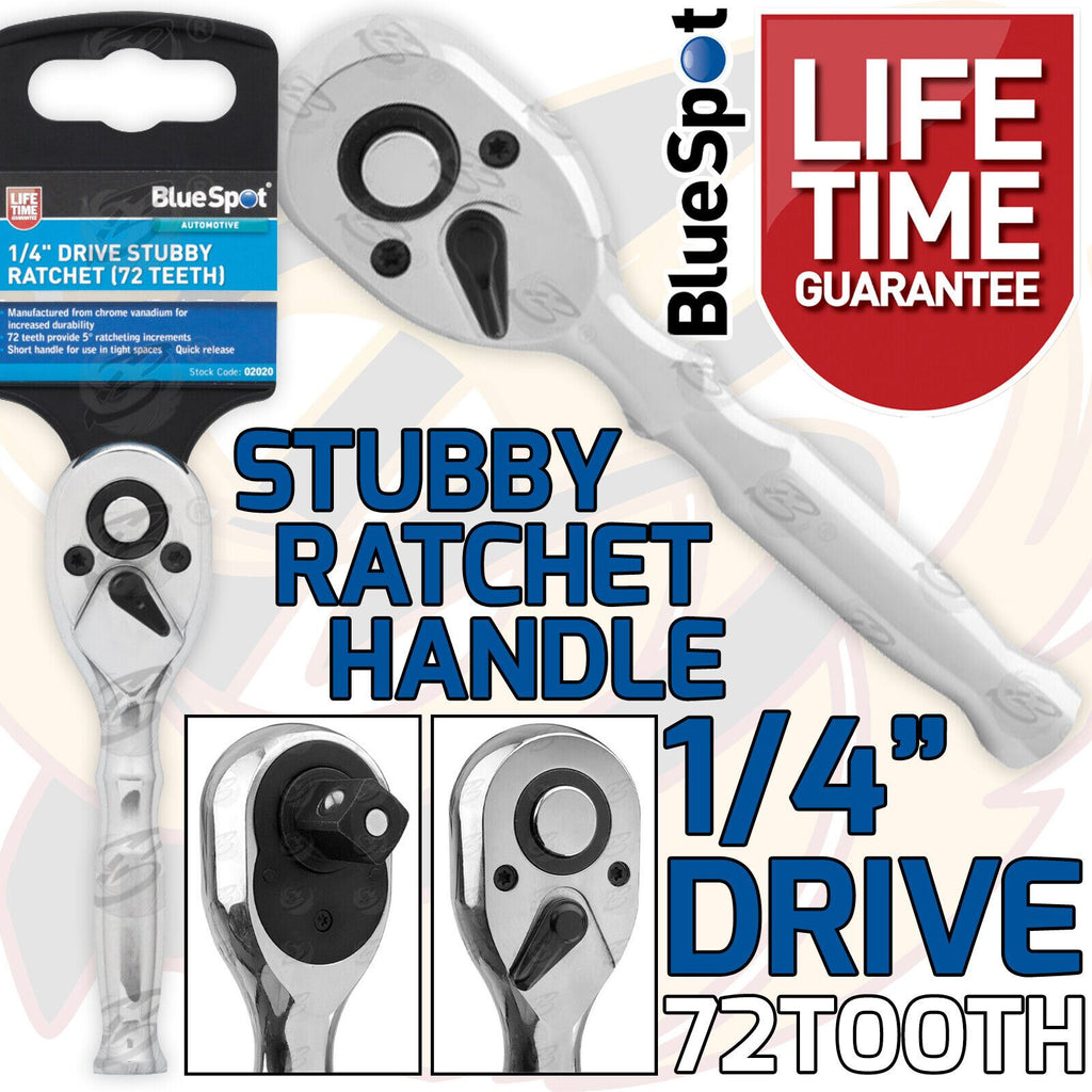 - BLUESPOT 1/4" DRIVE 72 TOOTH QUICK RELEASE STUBBY RATCHET HANDLE