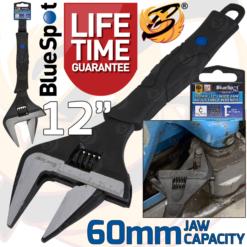 - THE BLUESPOT 10" WIDE JAW ADJUSTABLE WRENCH IS MANUFACTURED FROM CHROME VANADIUM FOR INCREASED DURABILITY