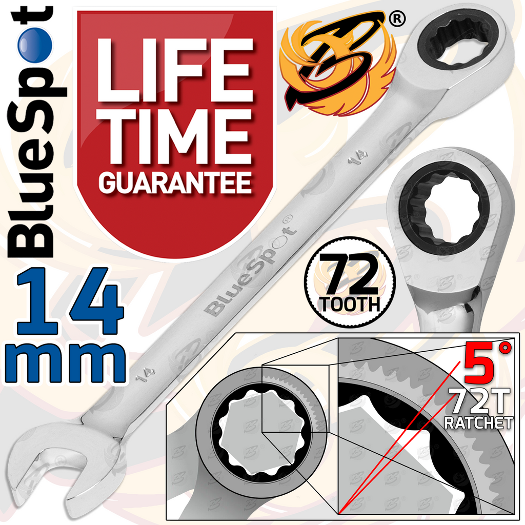 BlueSpot 14mm 72 Tooth Ratchet Spanner ( Single ) 05108