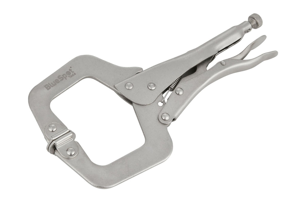 The BlueSpot 280mm (11") quick release C clamp is manufactured from heat treated carbon steel for increased durability, with a nickel plating to prevent against corrosion. They have adjustable opening jaws and a quick release lever. The jaws have flat faces mounted on a swivel pad for increased precision and stability with uneven workpieces, perfect for reaching into hard to access areas used in fabricating and woodworking etc.