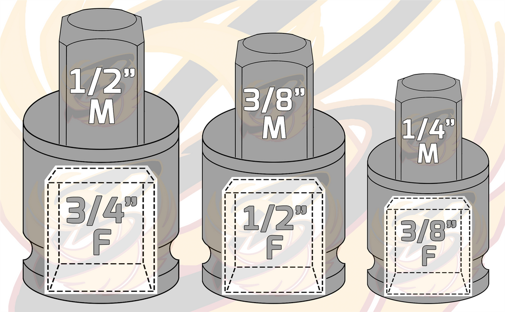 - 1 x 3/4" DRIVE FEMALE DOWN TO 1/2" DRIVE MALE