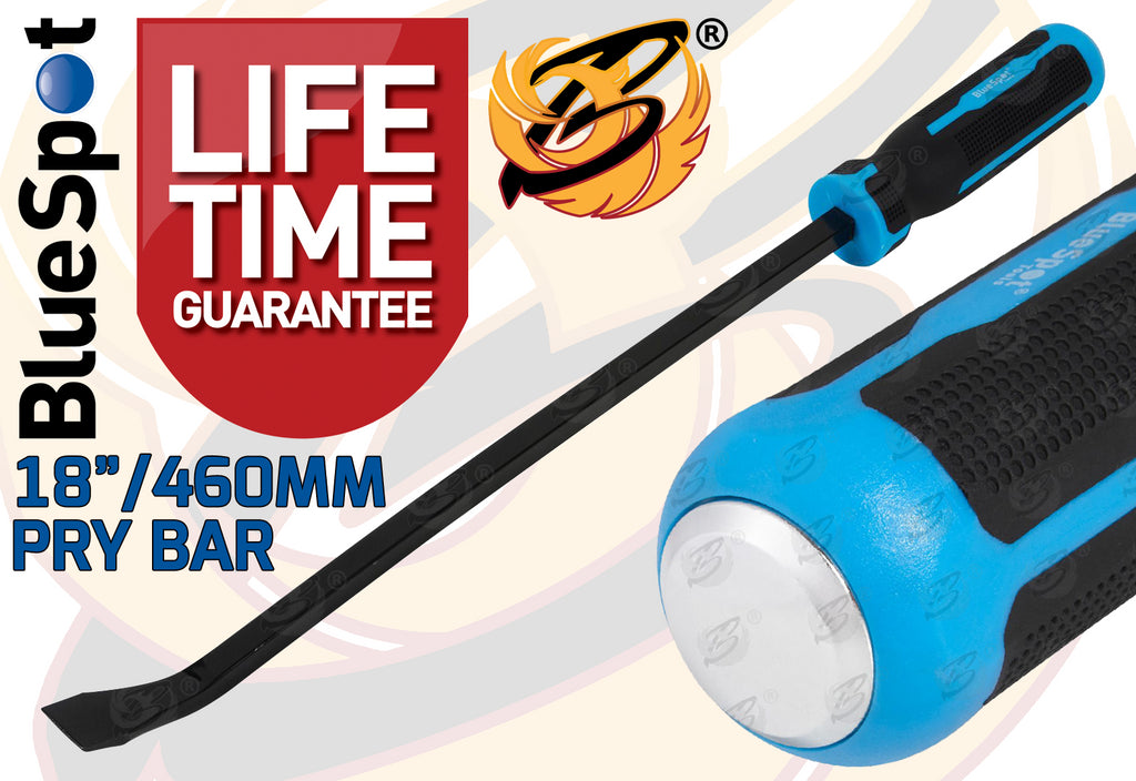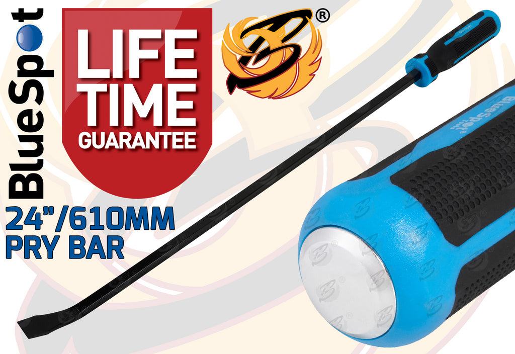These Blue Spot Tools Heavy duty pry bar with striking cap is manufactured from heat treated carbon steel for increased durability with a heavy duty Soft grip handle to aid user comfort.