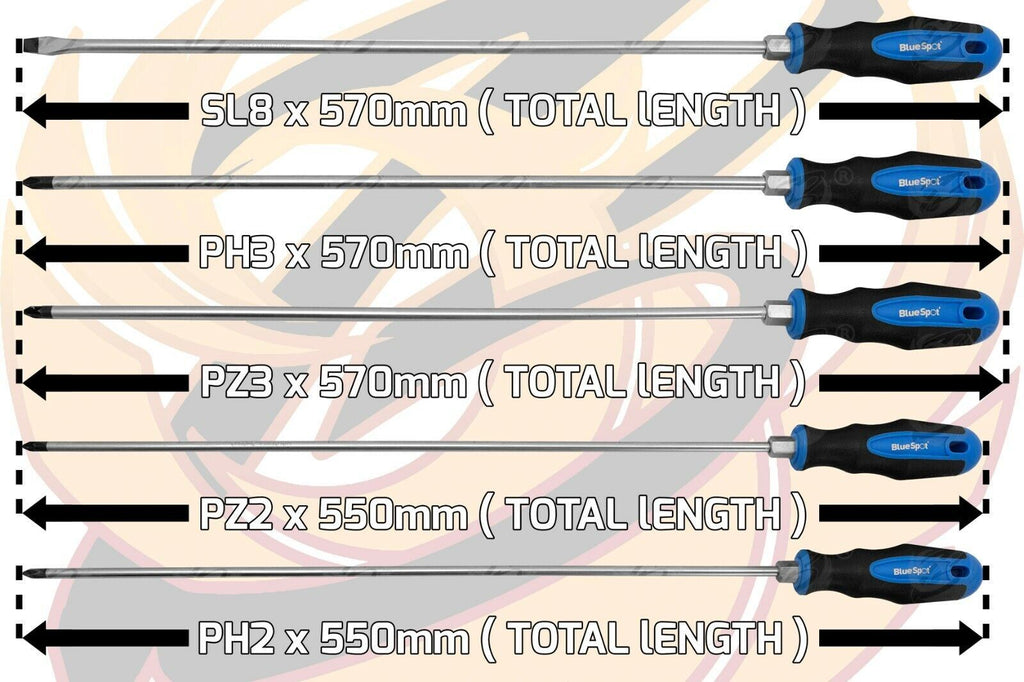 BLUESPOT 5PCS EXTRA LONG SCREWDRIVER SET