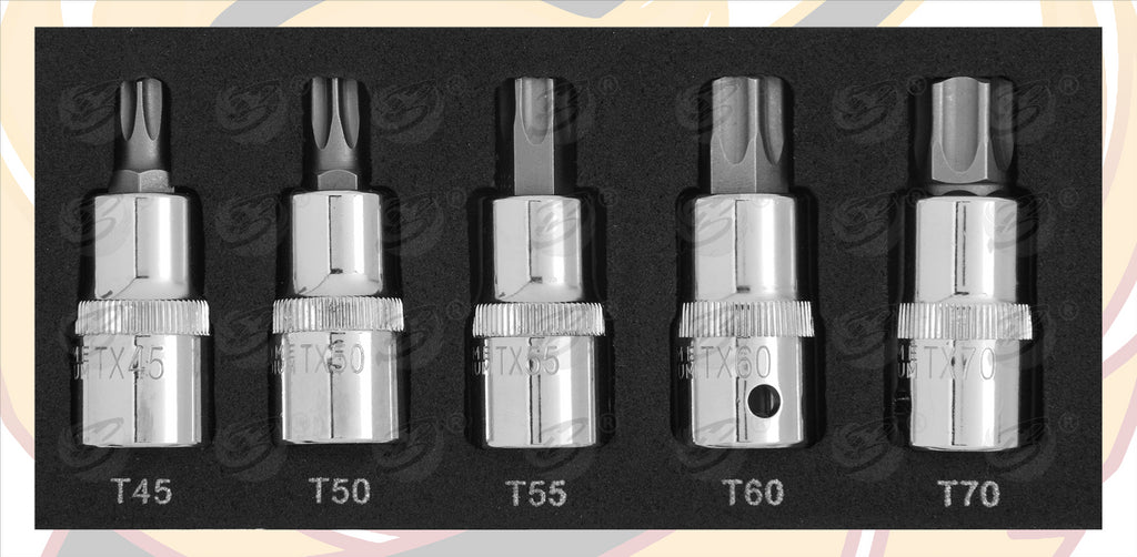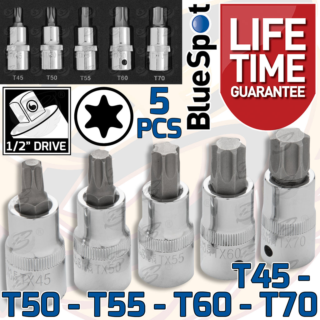 - BLUESPOT 5PCS 1/2" DRIVE TORX BIT SOCKET SET T45 - T70