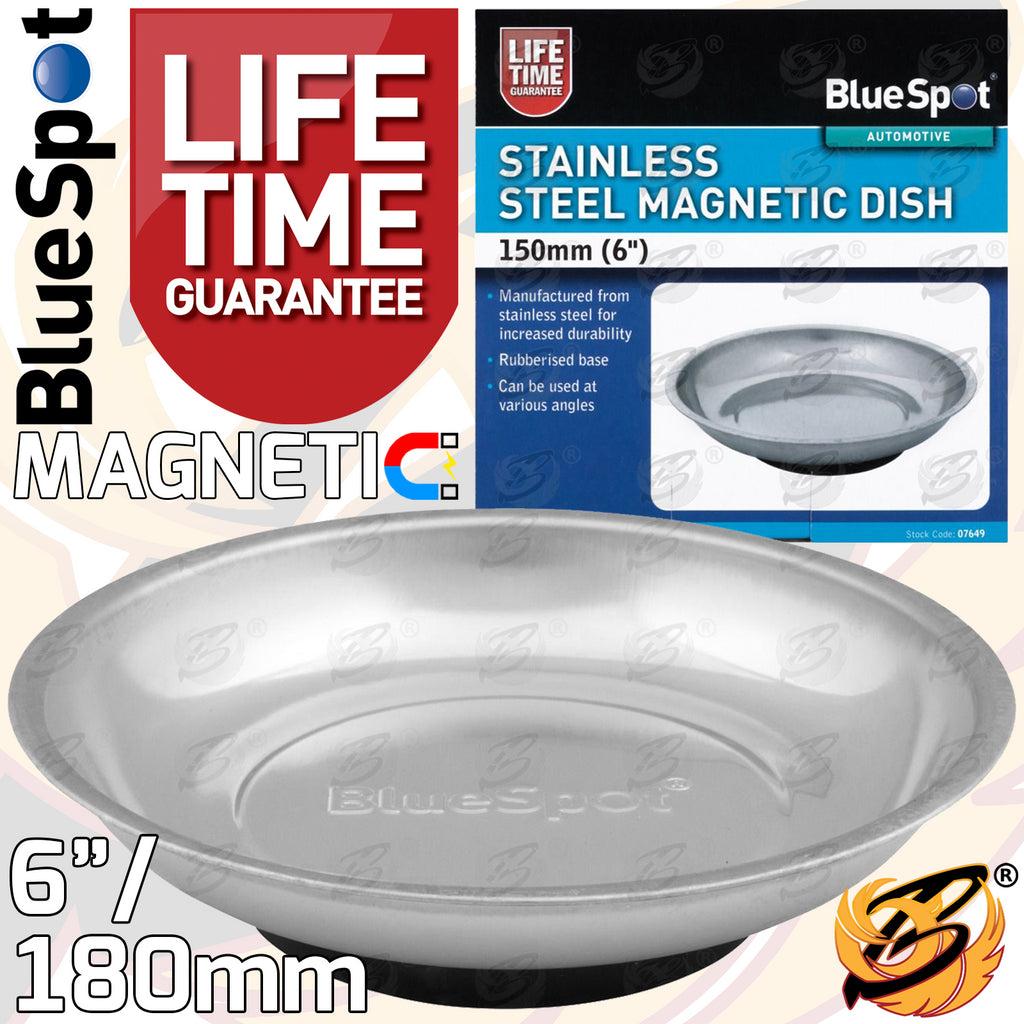 - THE BLUE SPOT TOOLS 150MM (6") STAINLESS STEEL MAGNETIC DISH IS A USEFUL TOOL FOR KEEPING PARTS SAFE WHEN WORKING