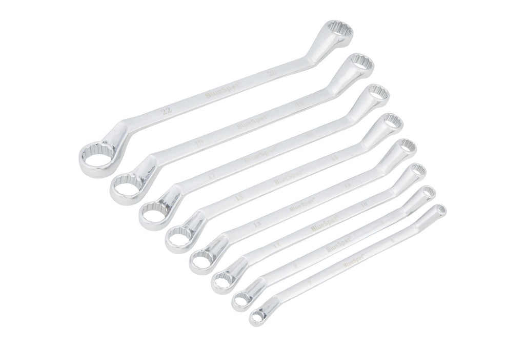 The Blue Spot Tools 8 PCE metric deep offset ring spanners is manufactured from chrome vanadium for increased durability. Each spanner in this set has a nickel chrome mirror-polished finish for added corrosion resistance.