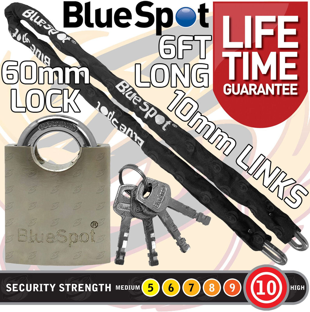 - 6ft x 10mm SQUARE LINK SECURITY CHAIN PLUS 60mm HEAVY DUTY CLOSED SHACKLE PADLOCK