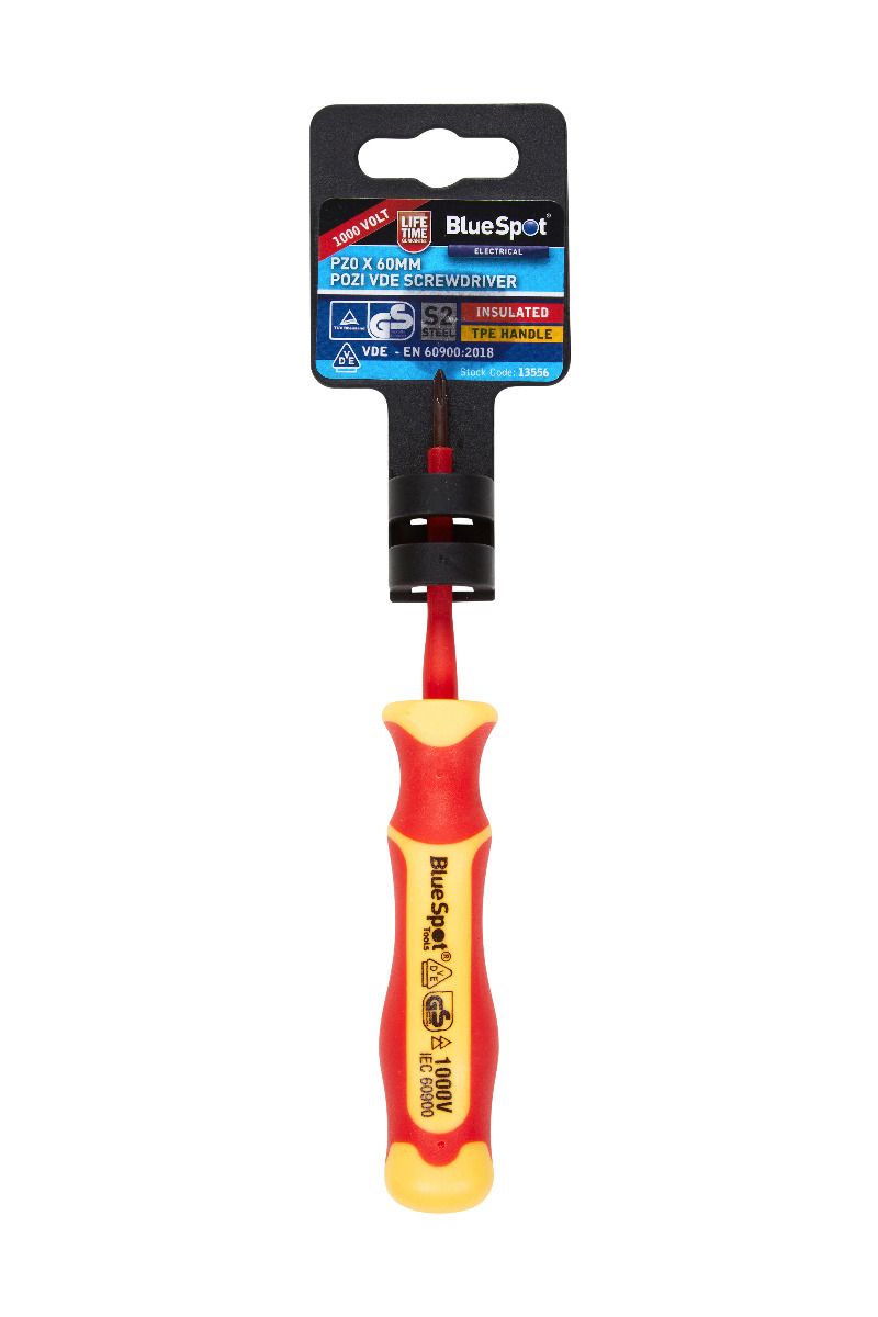 The Blue Spot Tools PZ0 X 60MM VDE Screwdriver is manufactured from S2 steel for increased durability with an ergonomic TPE handle, which provides user comfort and is insulated to 1000 volts. Ideal for professional use when working with electrical components.