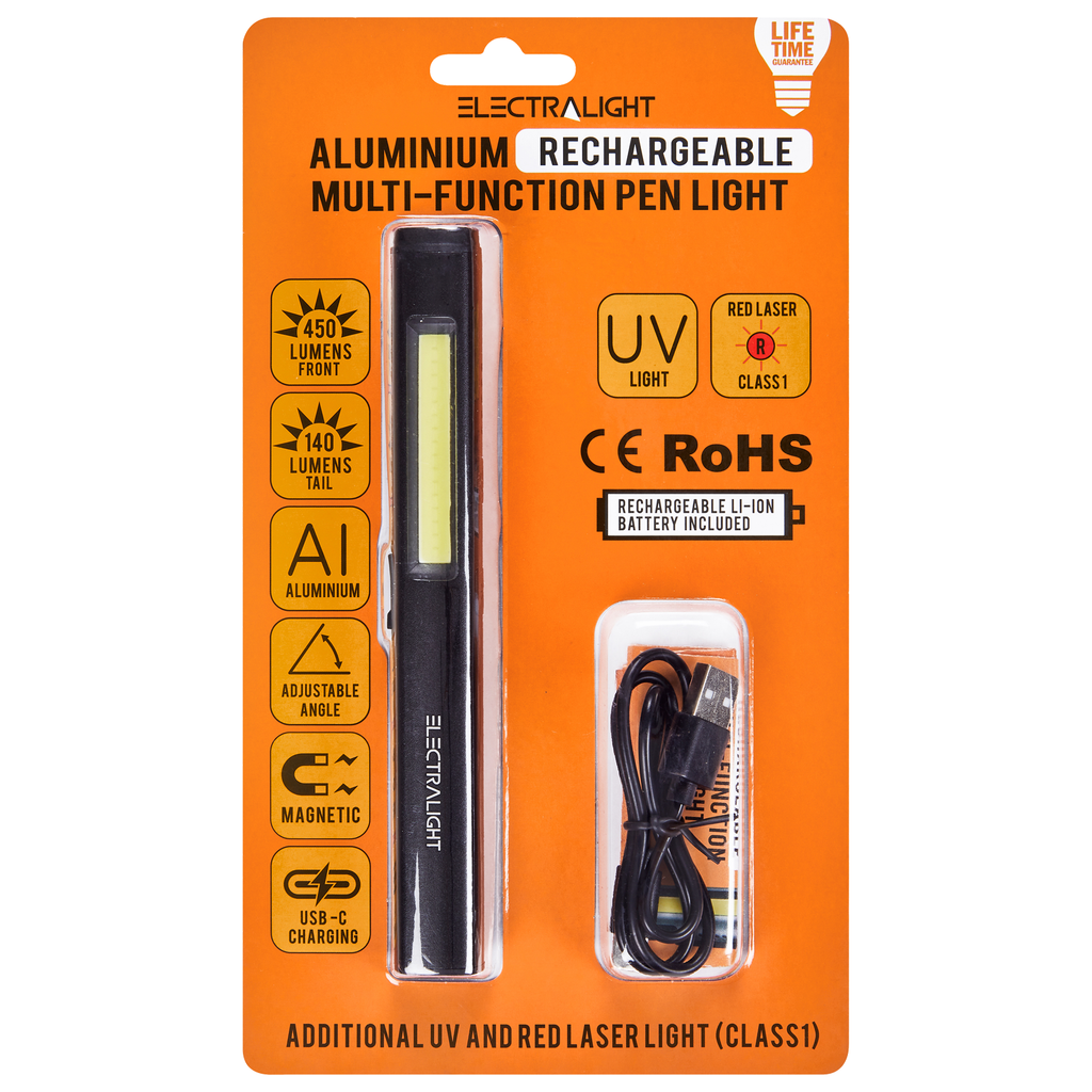 This versatile flashlight is designed for durability and multi-functionality, making it ideal for a wide range of tasks. Manufactured from ABS plastic and aluminium, it is both durable and lightweight.