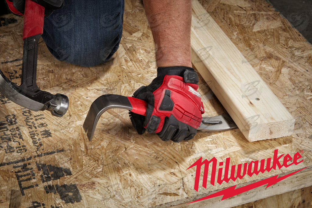 BEVELED EDGE IMPROVES LEVERAGE AND ACCESSIBILITY WHEN PULLING NAILS, LIFTING OR PRYING