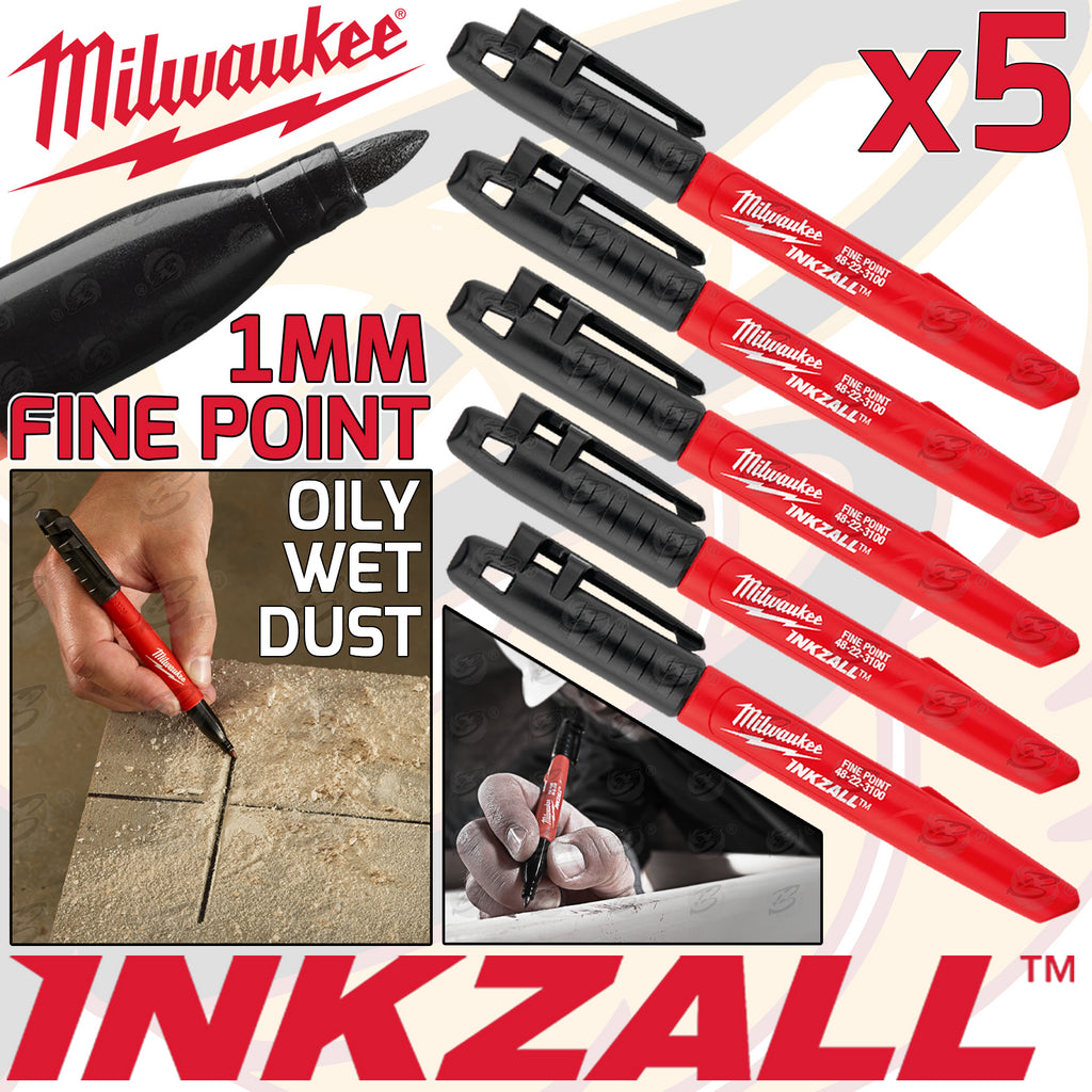 - MILWAUKEE BLACK INKZALL MARKERS x 5