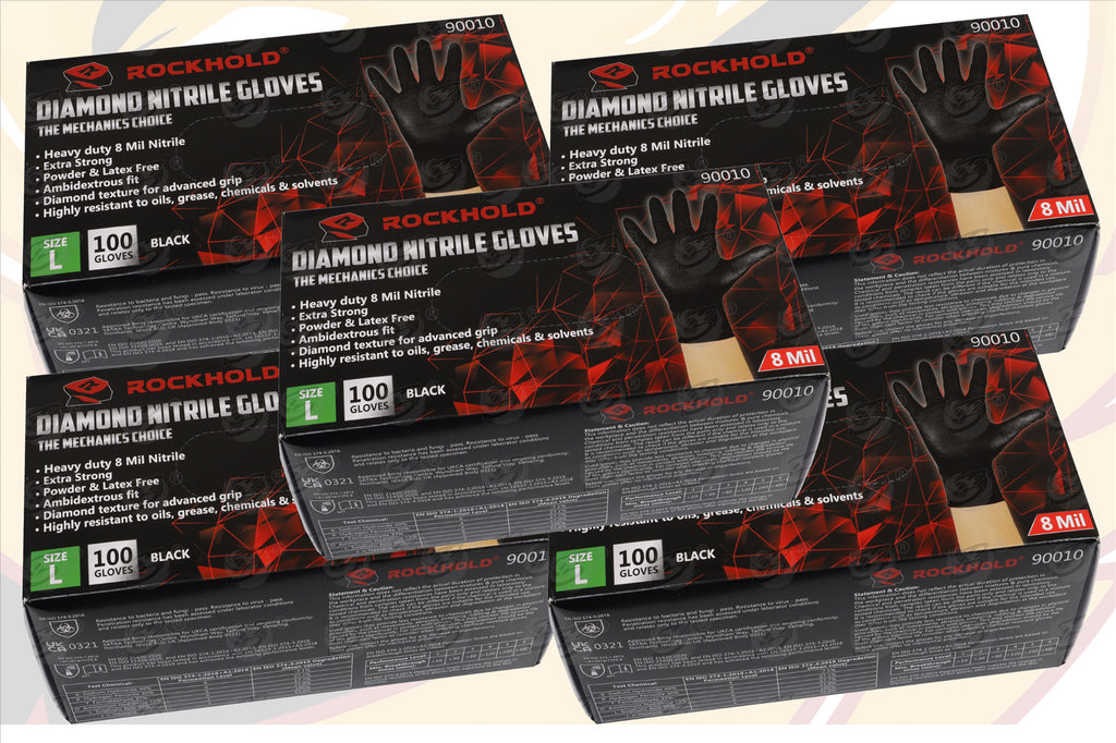 - ROCKHOLD HEAVY DUTY 8MIL DIAMOND GRIP NITRILE GLOVES ( BLACK )