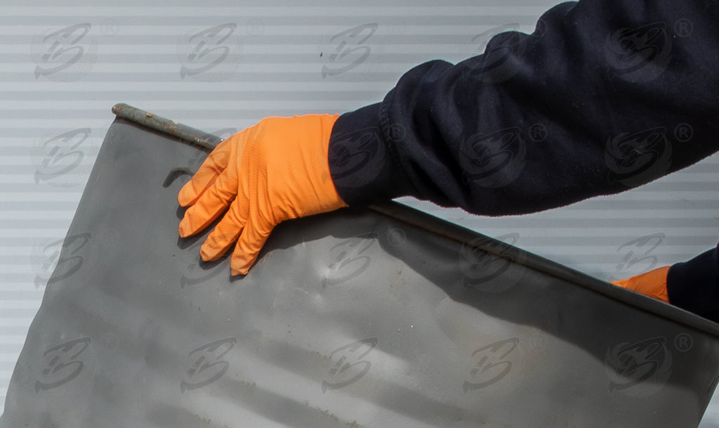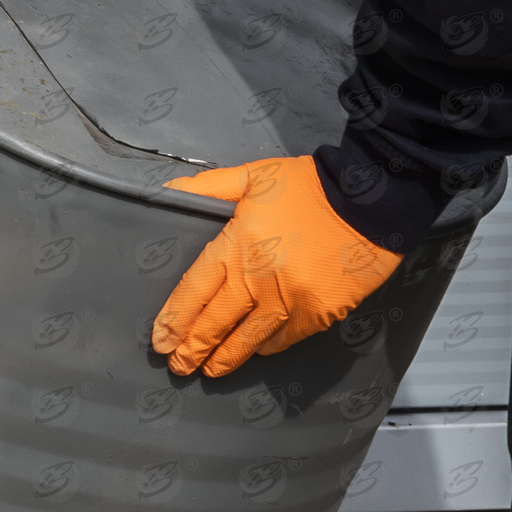 - ROCKHOLD HEAVY DUTY 8MIL DIAMOND GRIP NITRILE GLOVES ( ORANGE )