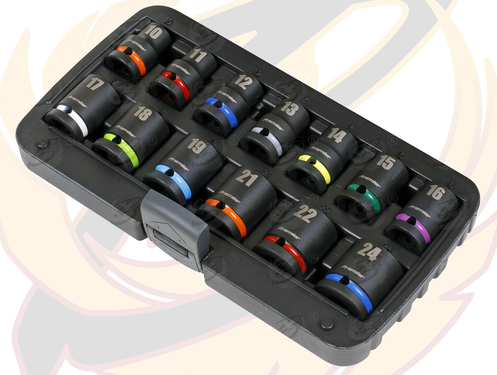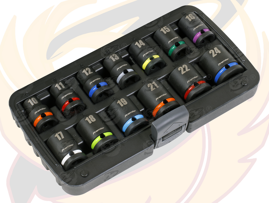 - SEALEY 13PCS 1/2" DRIVE 6 POINT SHALLOW IMPACT SOCKETS 10MM - 24MM