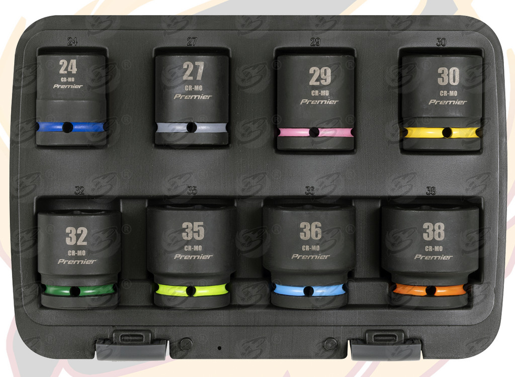 - SEALEY 16PCS 3/4" DRIVE 6 POINT DEEP & SHALLOW IMPACT SOCKETS 24MM - 38MM