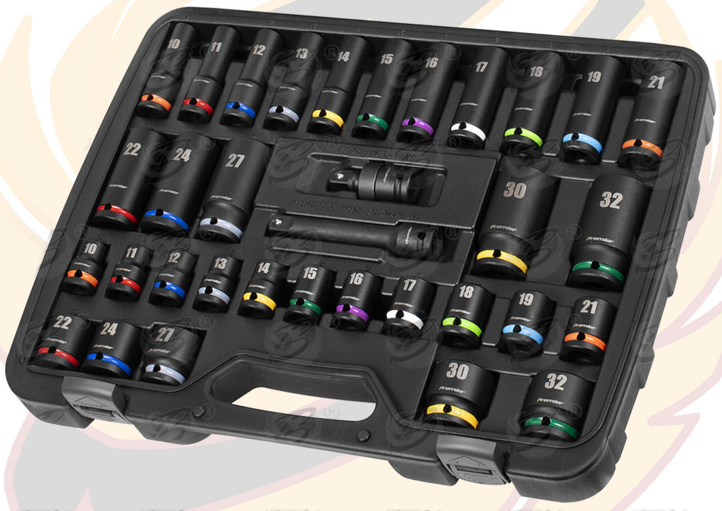 - SEALEY 34PCS 1/2" DRIVE 6 POINT DEEP & SHALLOW IMPACT SOCKET SETS ( 10MM - 32MM )
