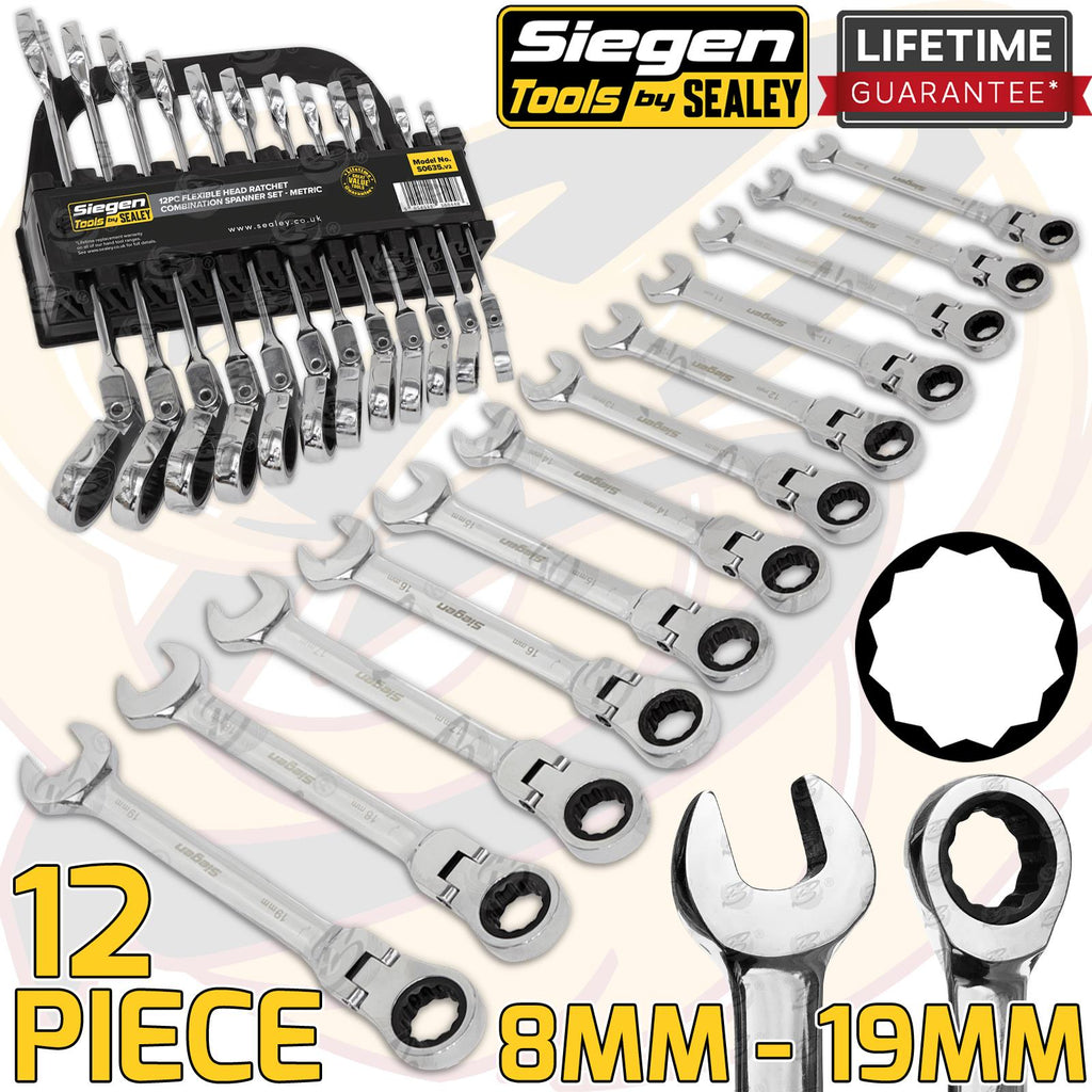 - Siegen 12 Piece Combination Flexible Ratchet Spanner Set 8mm - 19mm S0635