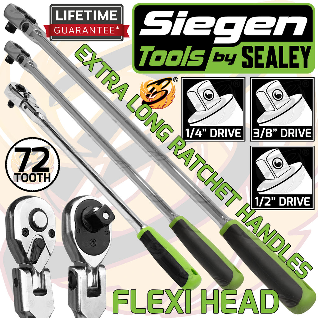 - SIEGEN 1/4" - 3/8" - 1/2" DRIVE EXTRA LONG FLEXI HEAD RATCHET SET