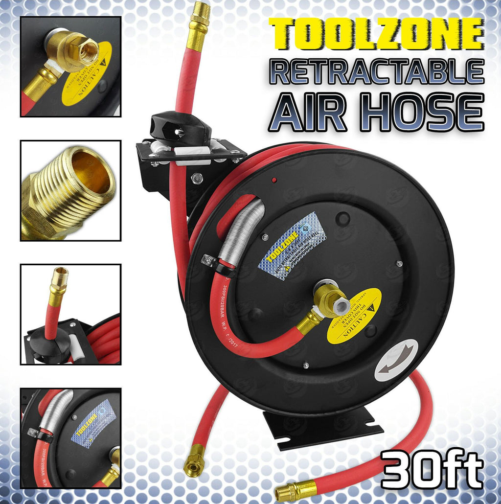 - QUALITY TOOLS.AUTOMOTIVE RANGE.MADE TO THE HIGHEST STANDARDS.PROFESSIONAL QUALITYHEAVY DUTY 3/8" 30ft Retractable Air Hose/Line