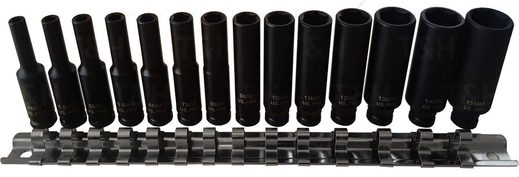 US PRO 14PCS 1/4" DRIVE 6 POINT DEEP IMPACT SOCKETS ( 4MM - 15MM )