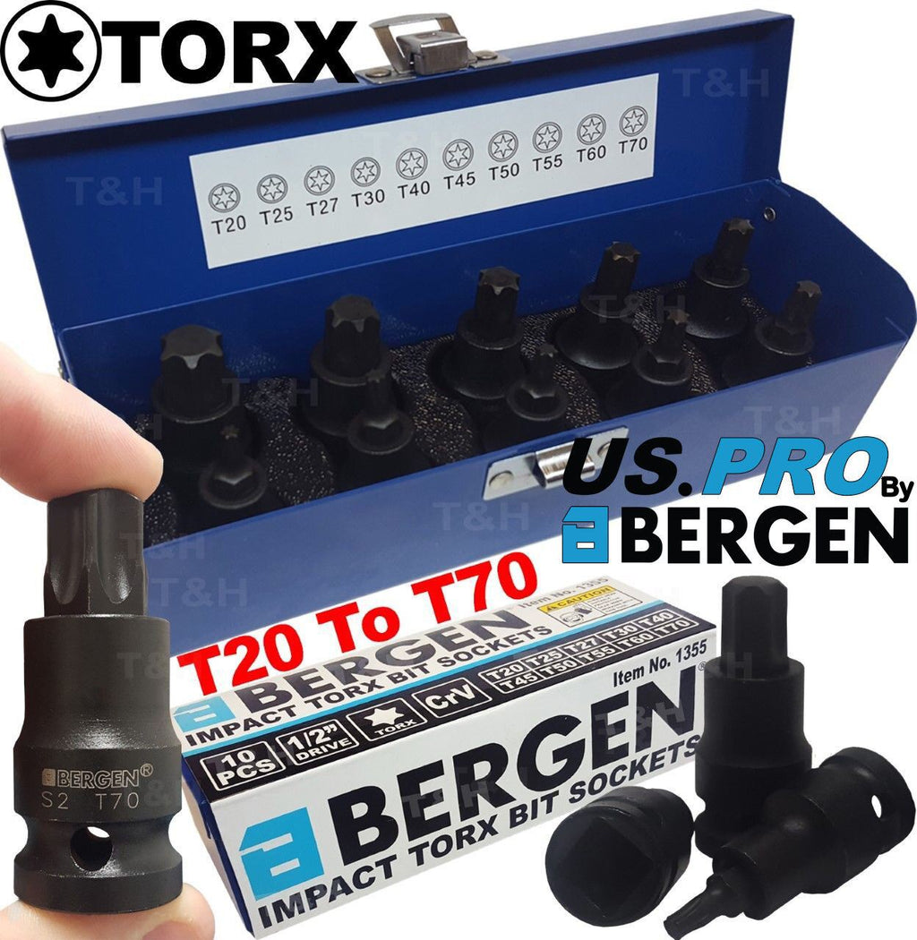 US PRO 10 PIECE 1/2" DRIVE IMPACT TORX BIT SOCKET SET