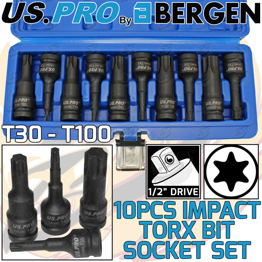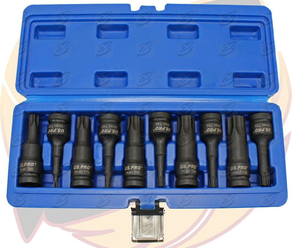 - 10 Piece 1/2" Drive Impact Torx Bit Socket Set T30 - T100