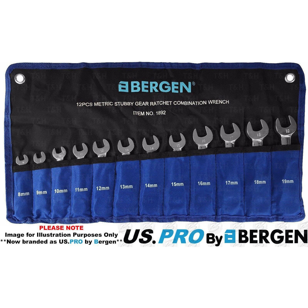 US PRO 12PC MIRROR POLISHED METRIC STUBBY RATCHET