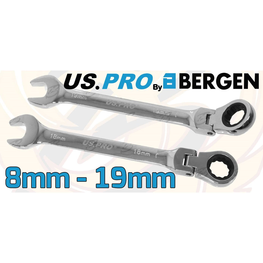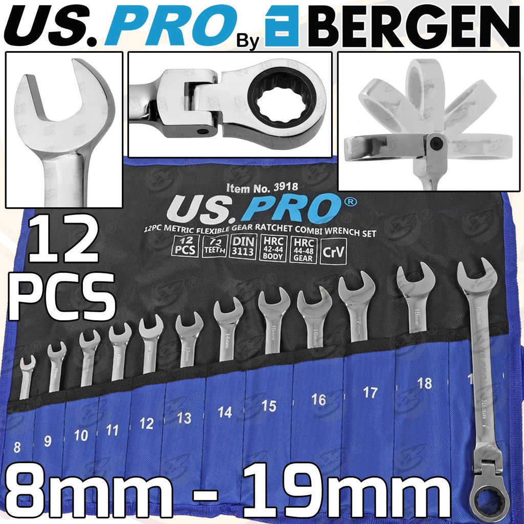 - US PRO 12 PIECE FLEXIBLE RATCHET SPANNER SET ( 8MM - 19MM )