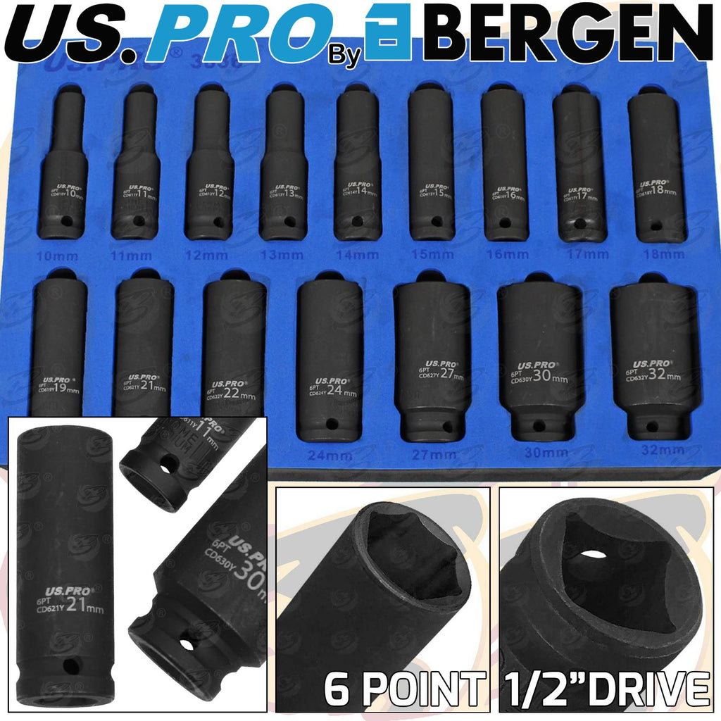 - US PRO 16 PIECE 1/2" DRIVE 6 POINT DEEP IMPACT SOCKET SET