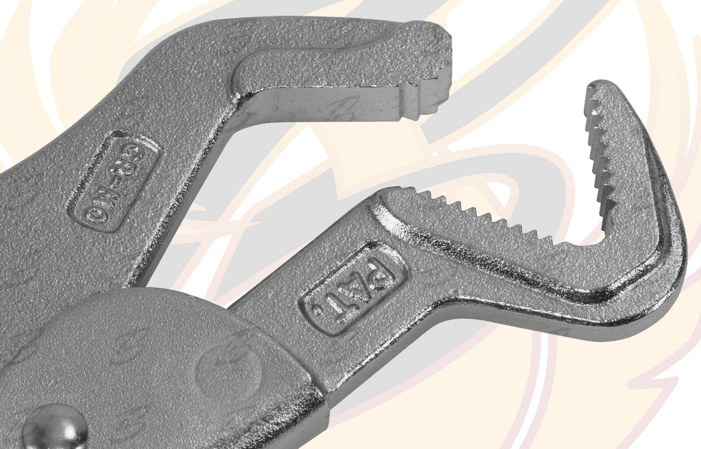 - STRONG, SAW TEETH STYLE JAWS GIVE EXTRA GRIP ESPECIALLY ON ROUNDED PROFILE OBJECTS