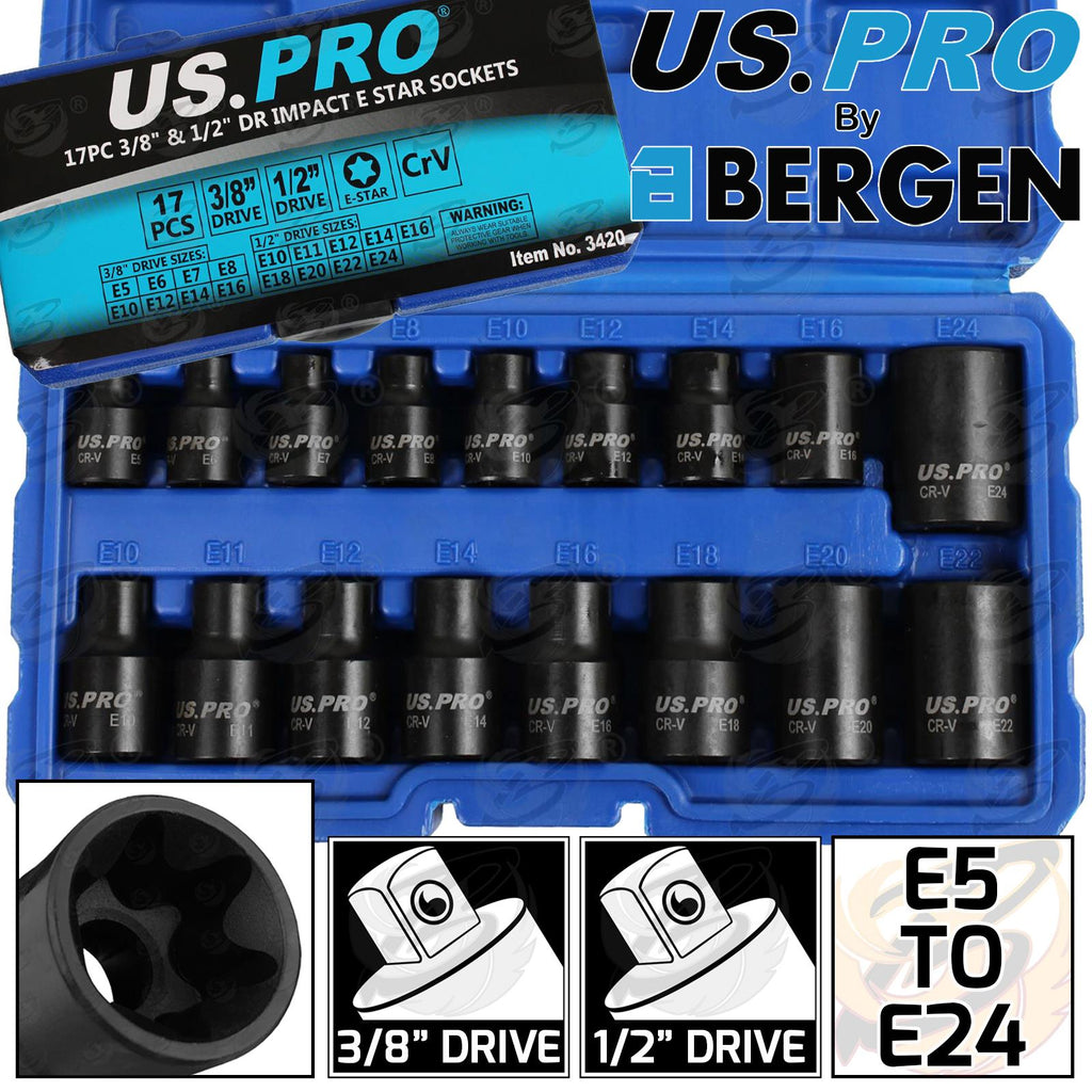 - 17 PIECE 3/8" & 1/2" DRIVE IMPACT E TORX SOCKETS