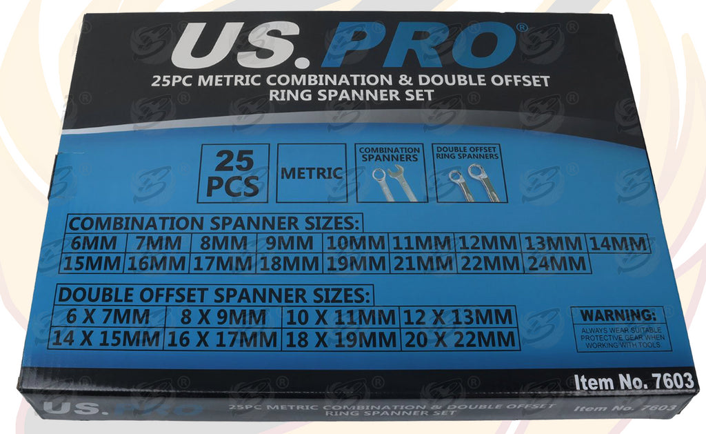 - US PRO 25PC METRIC COMBINATION & DOUBLE OFFSET RING SPANNER SET