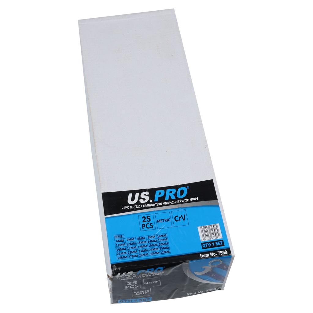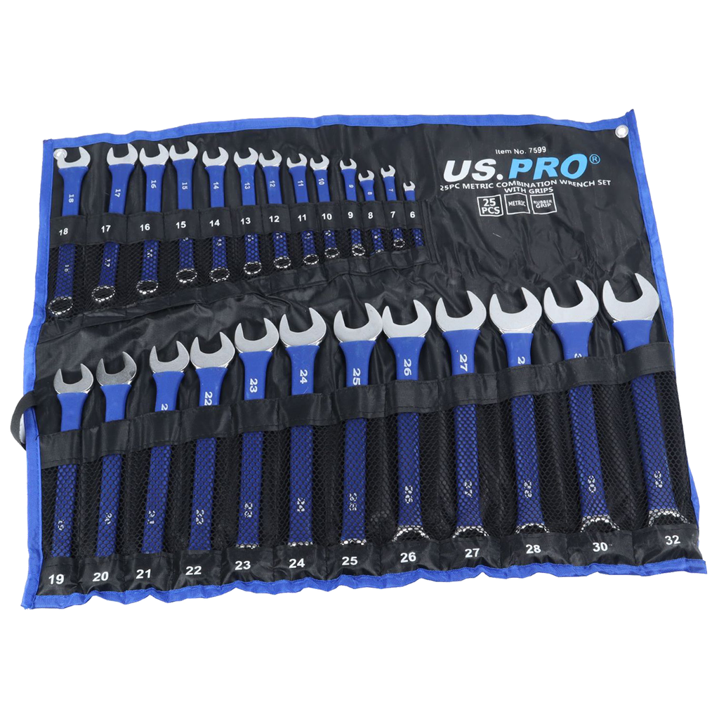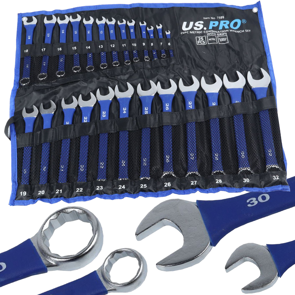 - A 25 piece set of metric combination spanners with rubber grip.