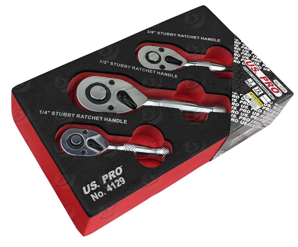 3PCS QUICK RELEASE 72 TOOTH STUBBY RATCHET HANDLES SET 1/4" DRIVE - 3/8" DRIVE - 1/2" DRIVE