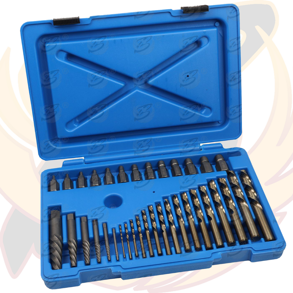 Selection of anti clockwise (left hand) extractors and HSS drill bits for removing broken screws, bolts, lugs, studs and most fixings with a thread.