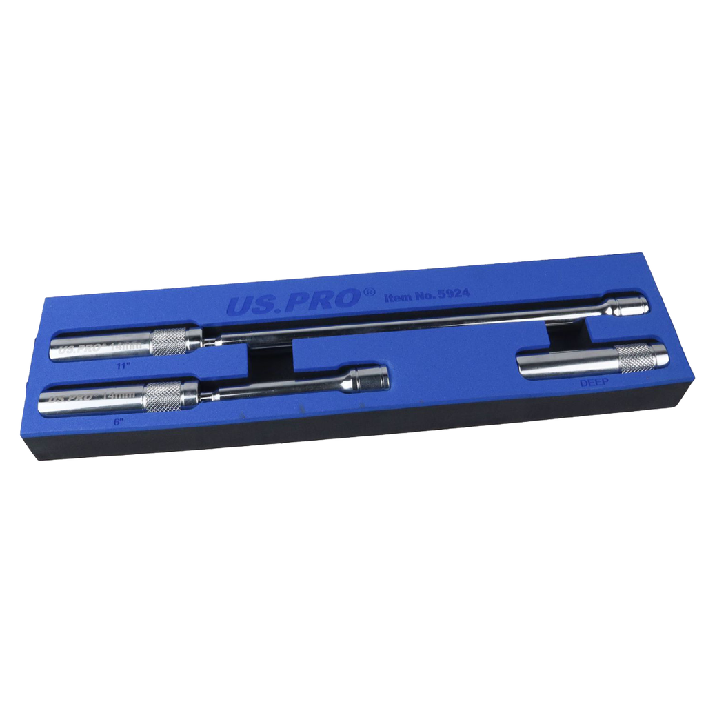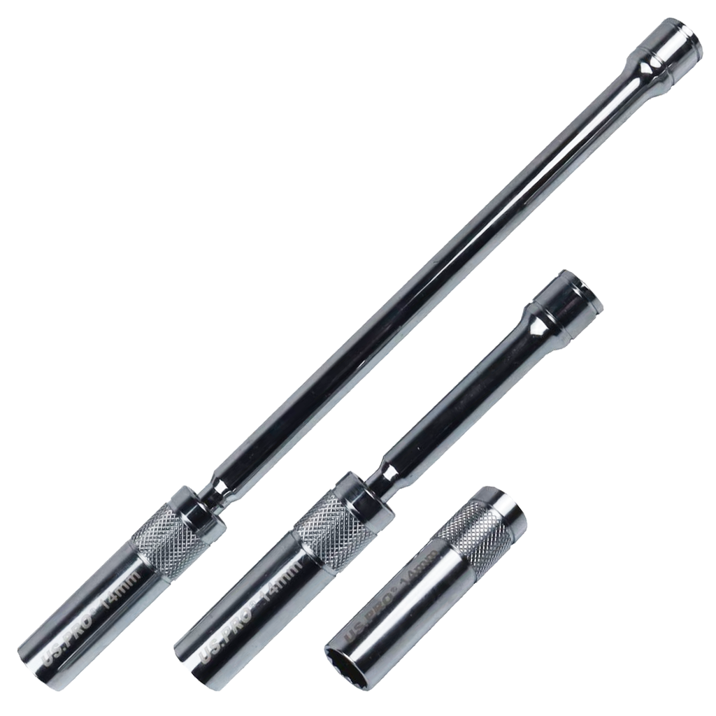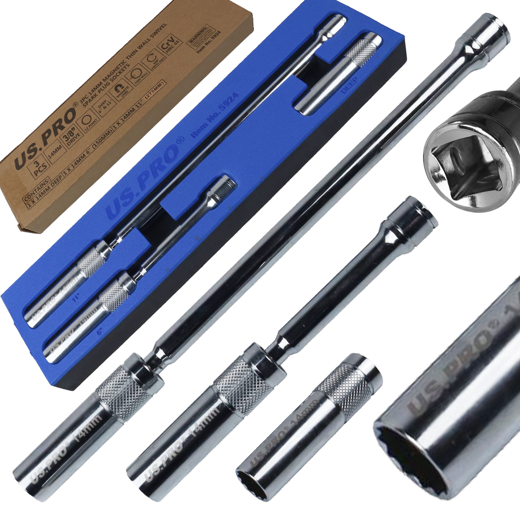 - A set containing three different lengths of 14mm thin wall, magnetic, spark plug sockets with a swivel joint.