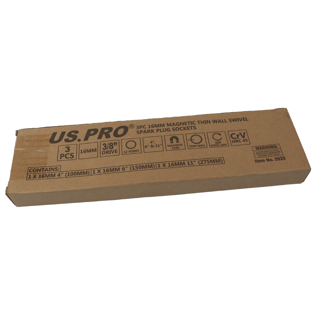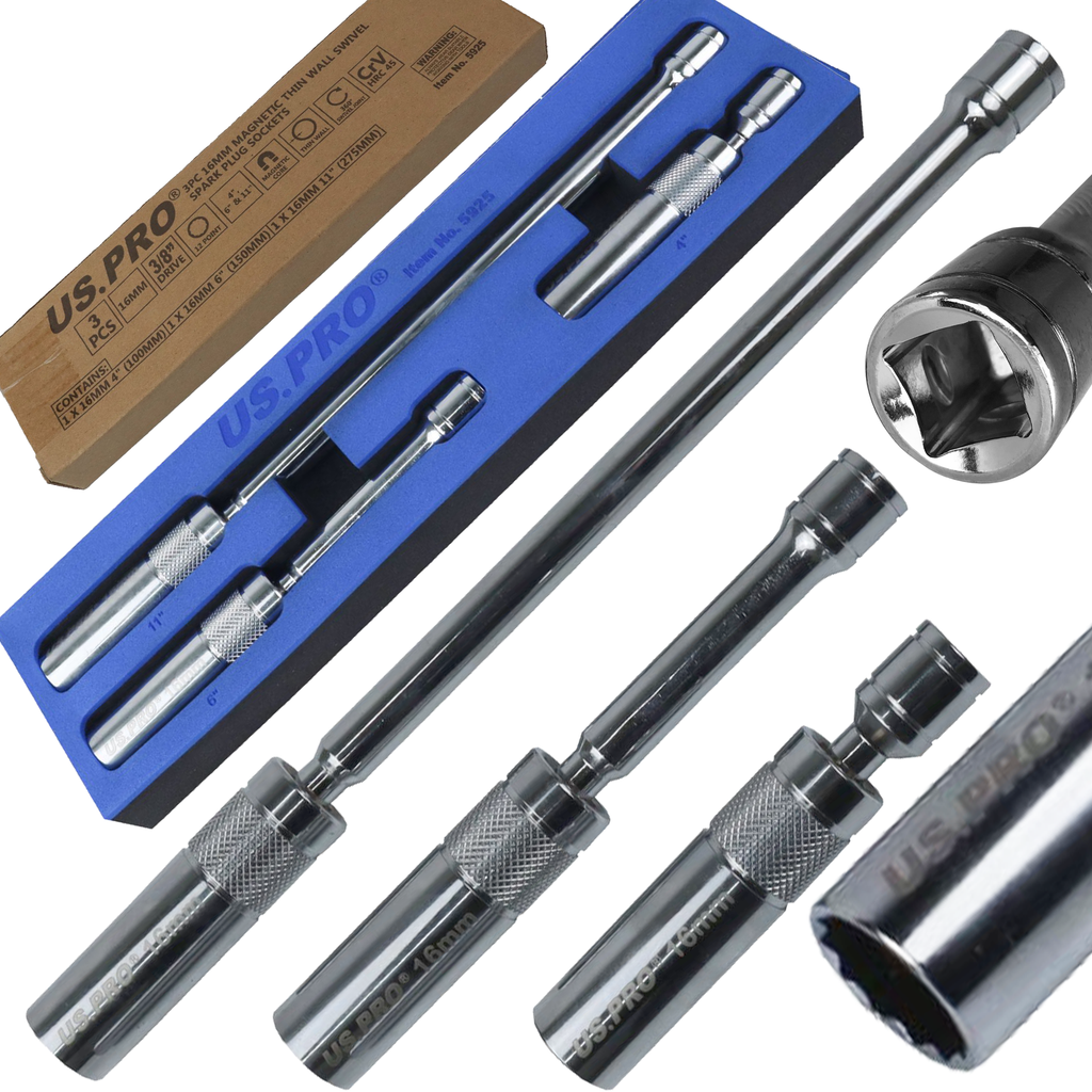 US Pro 3 Piece 16mm Magnetic Thin Wall Swivel Spark Plug Sockets 3/8" Dr 5925