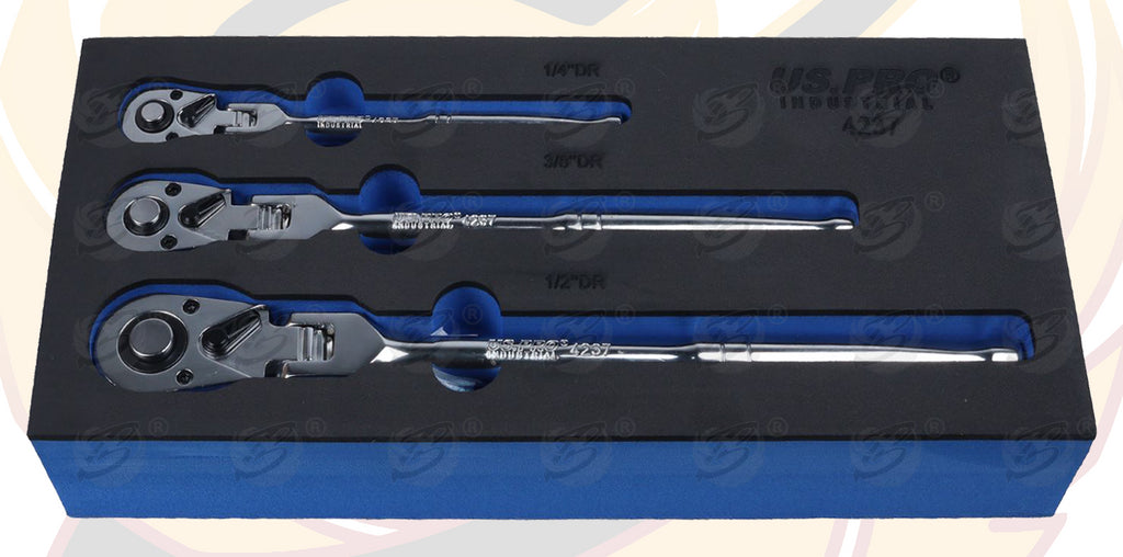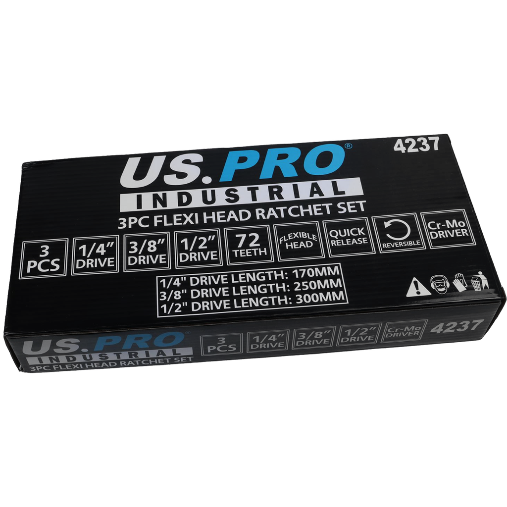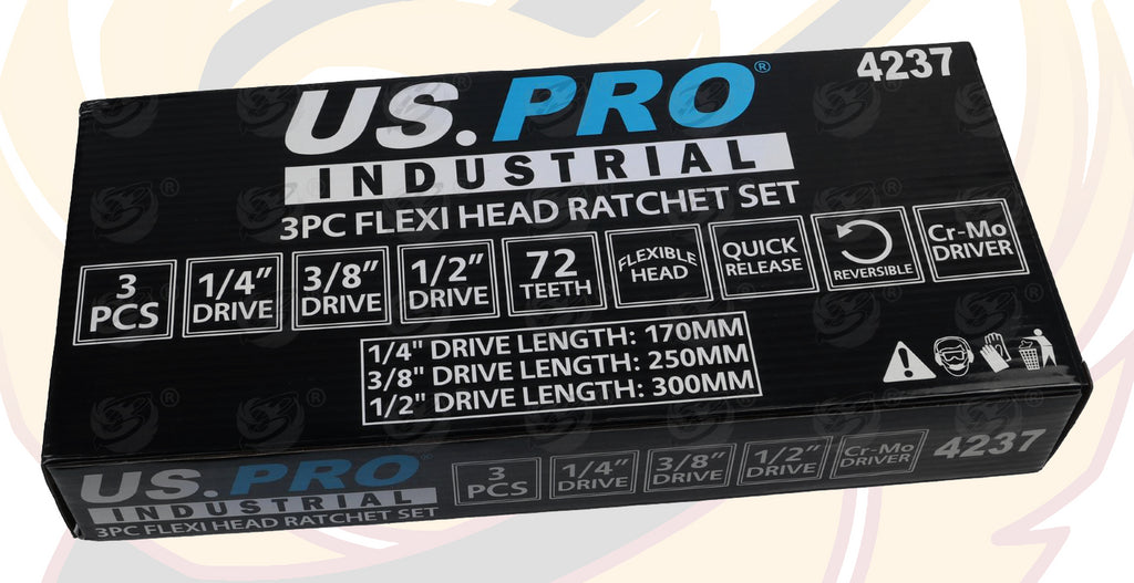 - US PRO 3PC FLEXI HEAD RATCHET SET 1/4" - 3/8" - 1/2" DRIVES