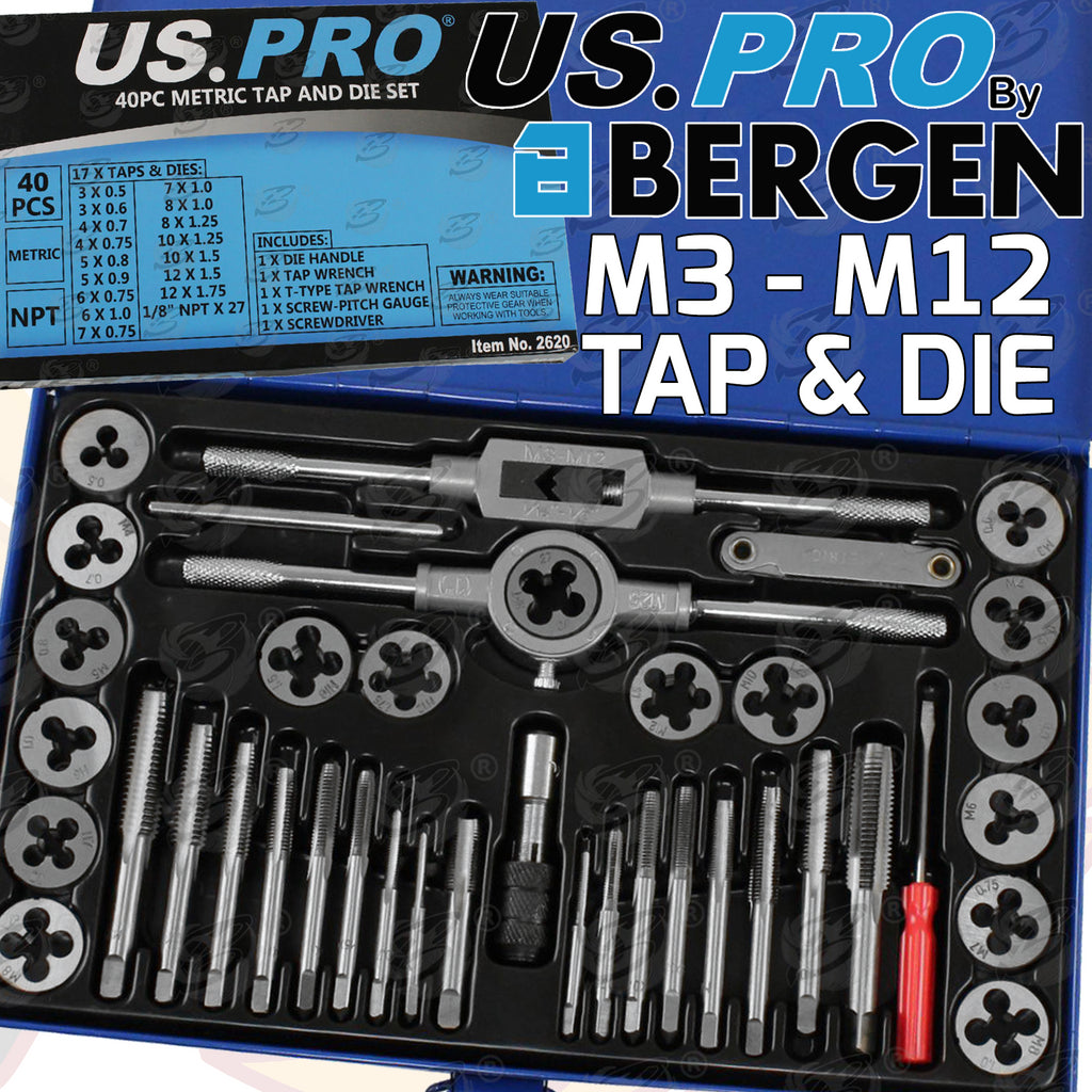 US PRO 40PCS METRIC TAP & DIE SET ( M3 - M12 )