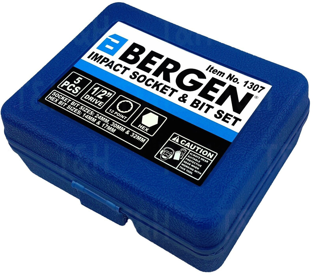 A SET OF IMPACT HUB NUT SOCKETS AND HEX BITS DESIGNED PRIMARILY FOR VOLKSWAGEN AUDI GROUP VEHICLES. THE SOCKETS ARE BI-HEX (12 POINT) AND ALL ITEMS ARE 1/2" DRIVE.