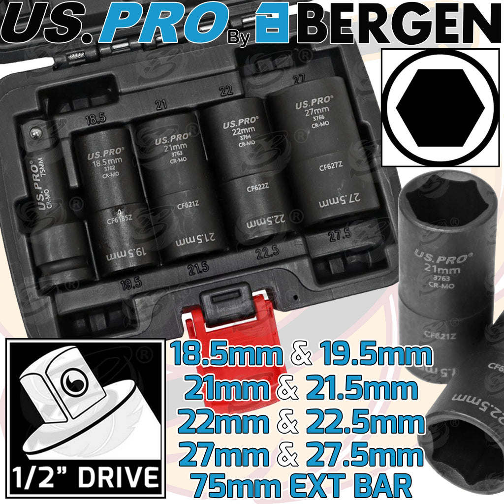 - 5 PIECE 1/2" DRIVE WHEEL NUT FLIP SOCKET SET