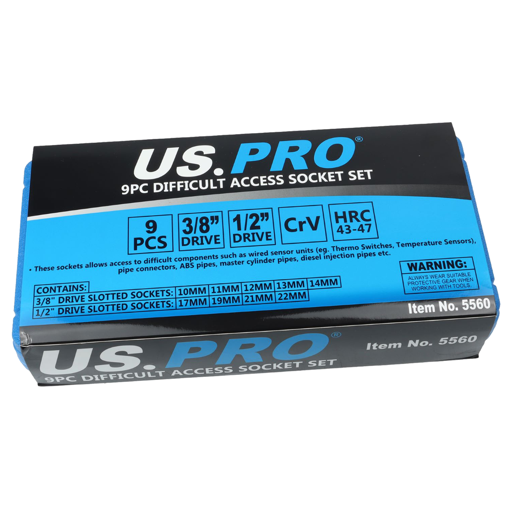 - US PRO 9PC 3/8" & 1/2" DRIVE DIFFICULT ACCESS SOCKET SET ( 10MM - 22MM )