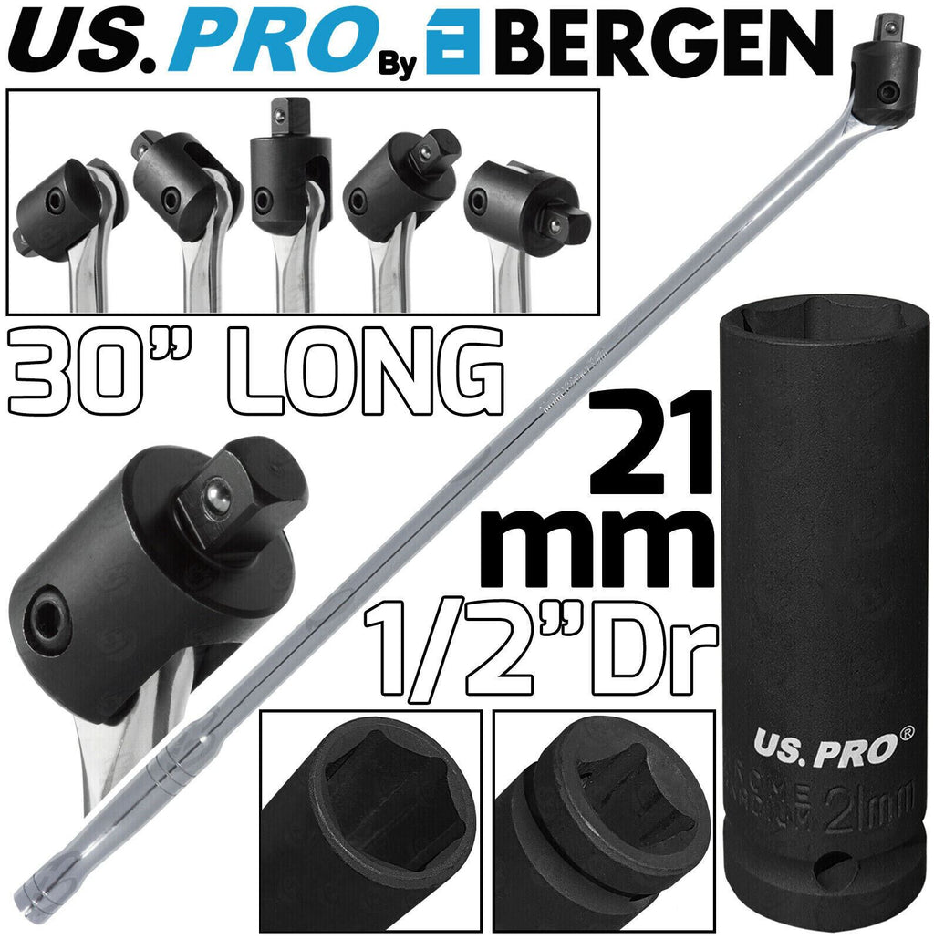 US PRO 1/2" DRIVE 30" LONG BREAKER BAR & 21MM 1/2" DRIVE 6 POINT DEEP IMPACT SOCKET
