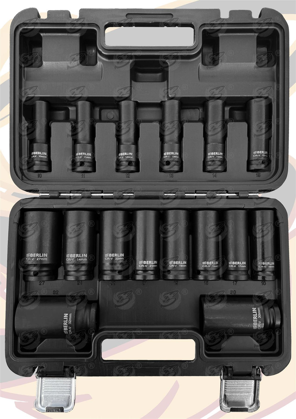 BERLIN 16-Piece 1/2" Drive 6-Point Deep Impact Socket Set 10mm - 32mm