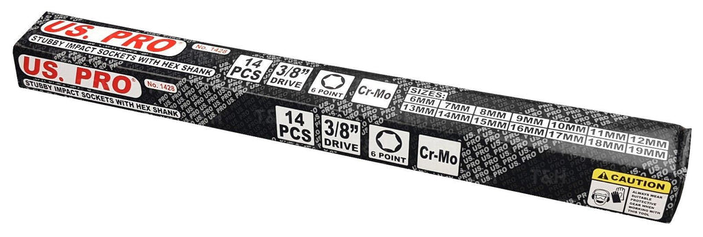 US PRO 14PCS 3/8" DRIVE 6 POINT SHALLOW IMPACT SOCKETS 6MM - 19MM